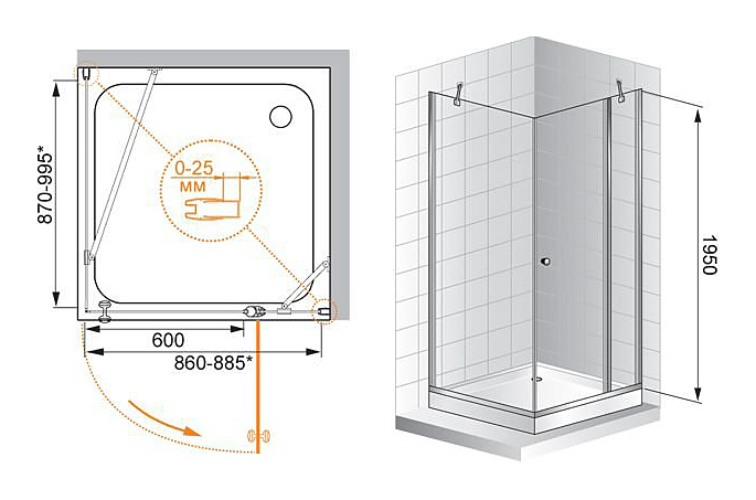 Уголок душевой CEZARES TRIUMPH-D-A-12-100-C-Cr-R 100х100х195 см
