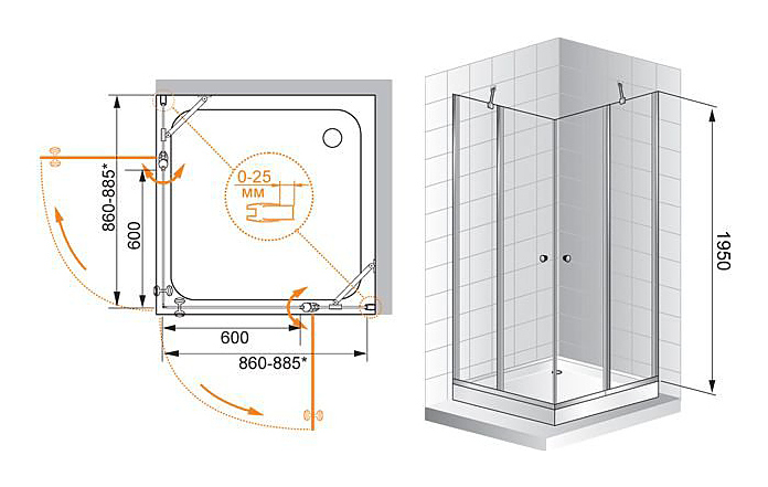 Уголок душевой CEZARES TRIUMPH-D-A-22-110-C-Cr 110х110х195 см