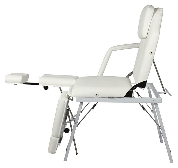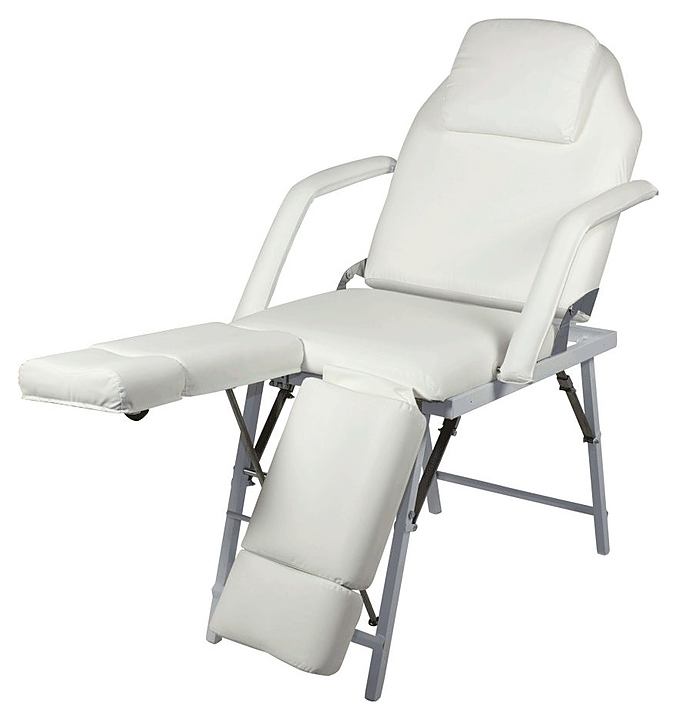 Педикюрное кресло МЭДИСОН МД-602 складное предназначено для комфортного размещения клиента при проведения процедур маникюра, педикюра, спа-процедур, косметического и лечебного массажа в салонах красоты и косметологических центрах. Модель оснащена устойчивой рамой, удобным ложементом с мягкими сиденьем, спинкой с отверстием для лица, ножные подушки с выдвижными секциями для стоп, съемной подушкой-подголовником и съемными подлокотники. Обивка выполнена из качественной экокожи, каркас – из металла с антикоррозийным покрытием, наполнитель – эластичный пенополиуретан. Модель доступна в альтернативном цветовом исполнении обивки экокожей категории Стандарт. Особенности: