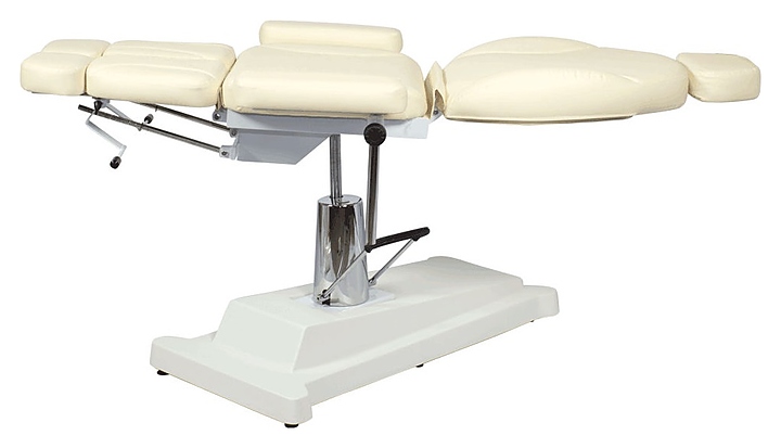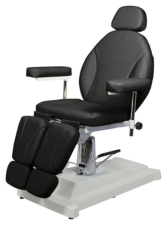 Педикюрное кресло МЭДИСОН МД-02 гидравлика предназначено для комфортного размещения клиента при проведения процедур маникюра, педикюра, спа-процедур, косметического и лечебного массажа в салонах красоты и косметологических центрах. Модель оснащена устойчивым основанием на подпятниках, гидравлическим подъемником, удобным ложементом с мягкими сиденьем, спинкой, ножными подушками с выдвижными секциями для стоп, регулируемыми подлокотниками и выдвижным подголовником. Обивка выполнена из качественной экокожи, каркас – из металла и многослойной фанеры, основание – из металла и пластика, наполнитель – эластичный пенополиуретан. Модель доступна в альтернативном цветовом исполнении обивки экокожей категории Стандарт; белый № 89, слоновая кость № 90, черный № 92 категории Бизнес. Особенности: