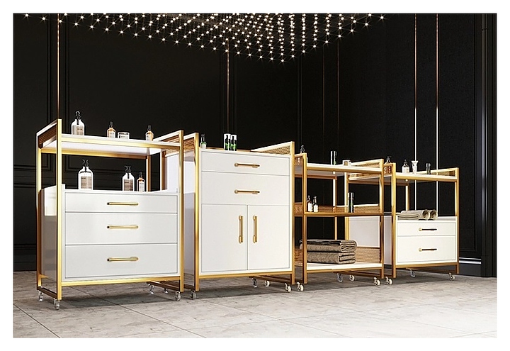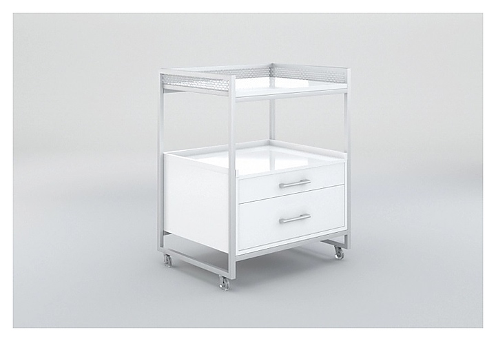 Косметологическая тележка Mertz Mango Balance используется в маникюрных и педикюрных студиях, массажных и косметологических кабинетах, парикмахерских и салонах красоты для размещения инструментов, аппаратов, средств и прочих аксессуаров, и рационализации рабочего пространства мастера. Такое оборудование позволяет держать все необходимое под рукой и правильно организовать рабочее место. Модель оснащена 2 ящиками, 2 вместительными полками с бортиками, практичной декоративной сеткой на бортиках верхней полки, и бесшумными, профессиональными колесами. Каркас выполнен из металла, полки - из австрийского ЛДСП Egger, покрытого высококачественной кромкой Rehau. Особенности: