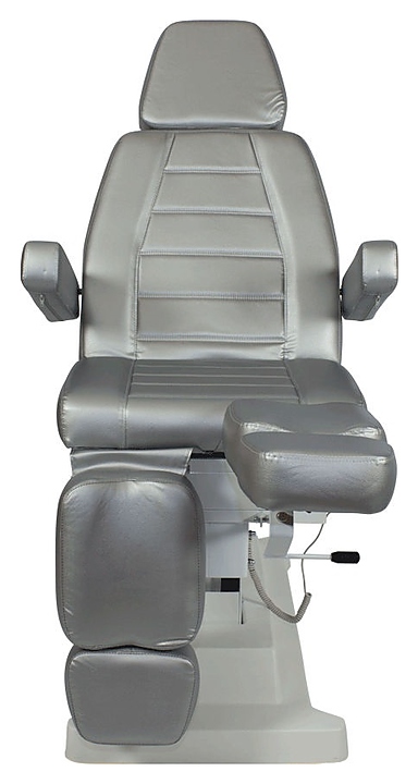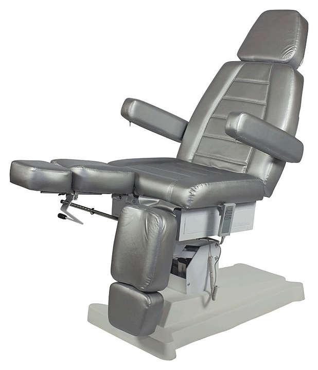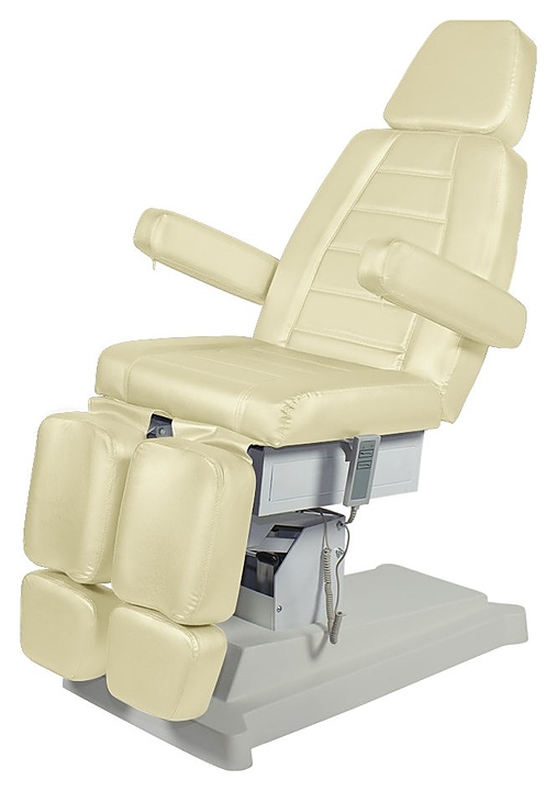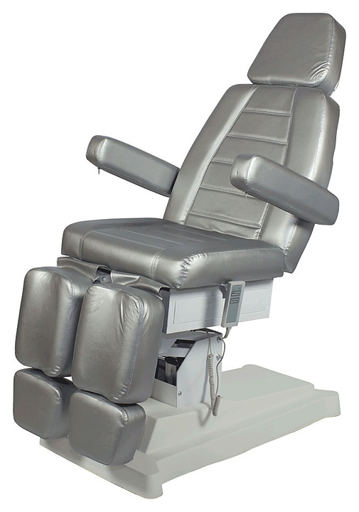 Педикюрное кресло МЭДИСОН СИРИУС-09 предназначено для комфортного размещения клиента при проведения процедур маникюра, педикюра, спа-процедур, косметического и лечебного массажа в салонах красоты и косметологических центрах. Модель оснащена устойчивым основанием, электроприводом с 2 моторами и пультом управления, удобным ложементом с мягкими сиденьем, спинкой, выдвижным подголовником, ножными подушками с выдвижными секциями для стоп и откидными подлокотниками. Обивка выполнена из качественной экокожи, каркас – из металла и многослойной фанеры, основание – из металла и пластика, наполнитель – эластичный пенополиуретан. Модель доступна в альтернативном цветовом исполнении обивки экокожей категории Стандарт; белый № 89, слоновая кость № 90, черный № 92 категории Бизнес. Особенности: