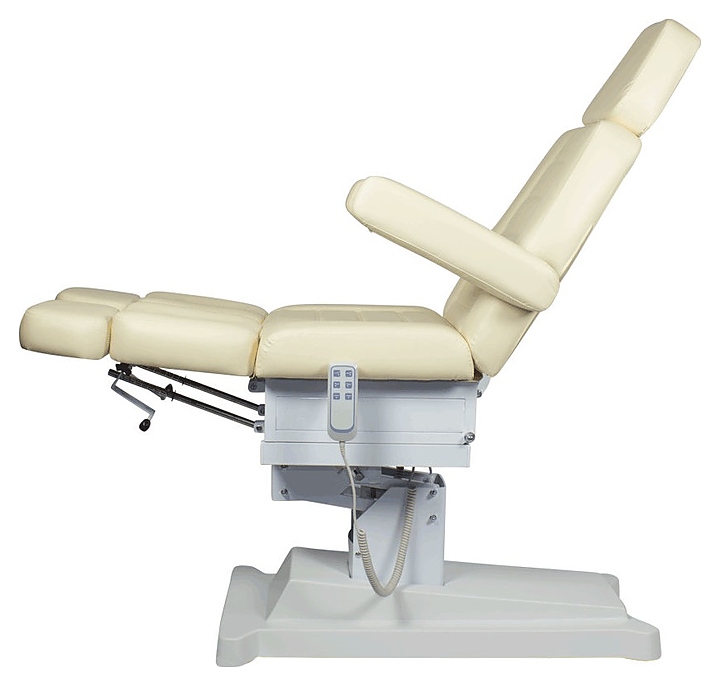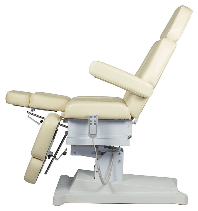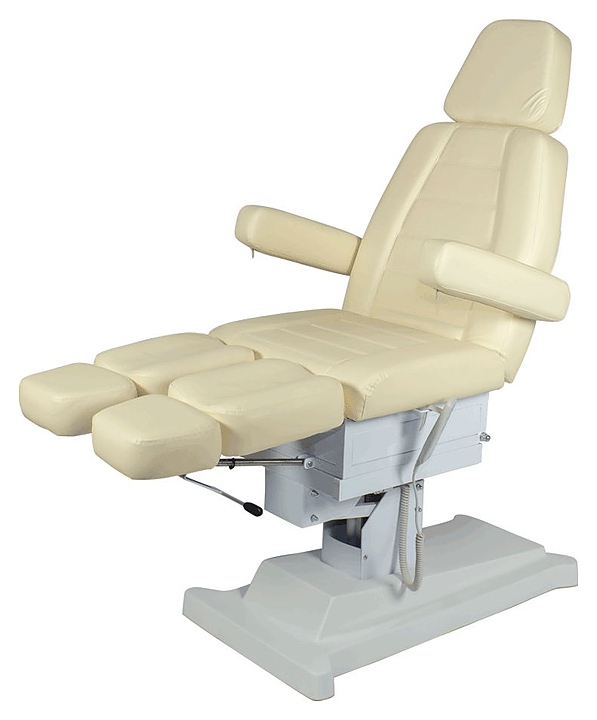 Педикюрное кресло МЭДИСОН СИРИУС-10 предназначено для комфортного размещения клиента при проведения процедур маникюра, педикюра, спа-процедур, косметического и лечебного массажа в салонах красоты и косметологических центрах. Модель оснащена устойчивым основанием, электроприводом с 3 моторами и пультом управления, удобным ложементом с мягкими сиденьем, спинкой, выдвижным подголовником, ножными подушками с выдвижными секциями для стоп и откидными подлокотниками Обивка выполнена из качественной экокожи, каркас – из металла и многослойной фанеры, основание – из металла и пластика, наполнитель – эластичный пенополиуретан. Модель доступна в альтернативном цветовом исполнении обивки экокожей категории Стандарт; белый № 89, слоновая кость № 90, черный № 92 категории Бизнес. Особенности: