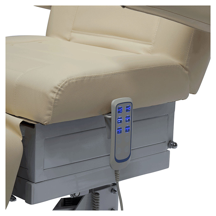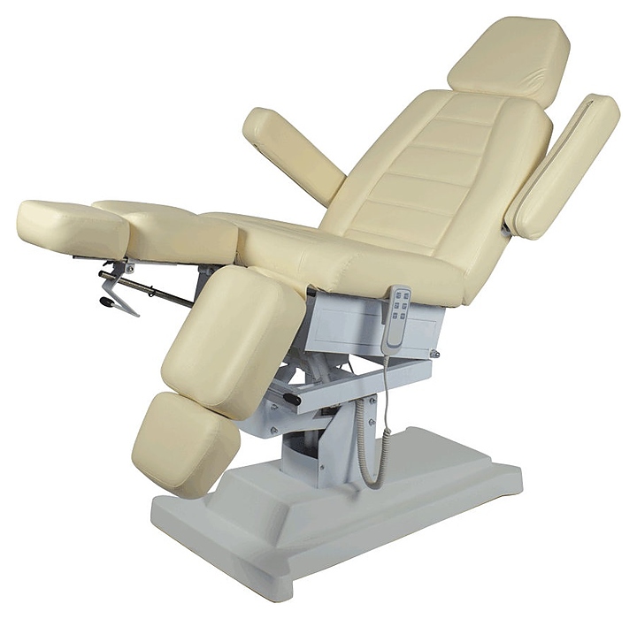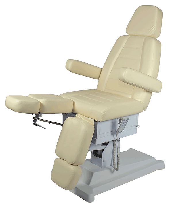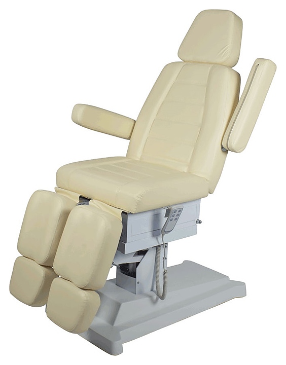 Педикюрное кресло МЭДИСОН СИРИУС-10 предназначено для комфортного размещения клиента при проведения процедур маникюра, педикюра, спа-процедур, косметического и лечебного массажа в салонах красоты и косметологических центрах. Модель оснащена устойчивым основанием, электроприводом с 3 моторами и пультом управления, удобным ложементом с мягкими сиденьем, спинкой, выдвижным подголовником, ножными подушками с выдвижными секциями для стоп и откидными подлокотниками Обивка выполнена из качественной экокожи, каркас – из металла и многослойной фанеры, основание – из металла и пластика, наполнитель – эластичный пенополиуретан. Модель доступна в альтернативном цветовом исполнении обивки экокожей категории Стандарт; белый № 89, слоновая кость № 90, черный № 92 категории Бизнес. Особенности: