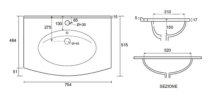 Раковина CEZARES COMFORT 50132 75x52 см, керамика