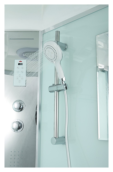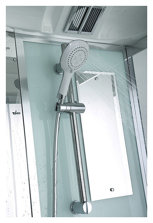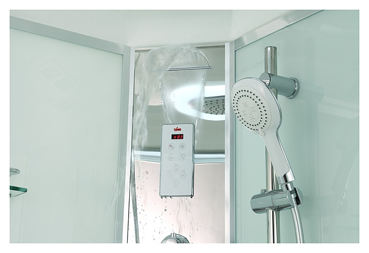 Душевая кабина TIMO Comfort T-8880 Fabric Glass предназначена для использования в ванных комнатах. Благодаря поддону в форме четверти круга модель можно вписать даже в ванные комнаты небольшой площади. Модель оснащена крышей, двумя раздвижными дверцами, средним поддоном на усиленном металлическом каркасе, термостатическим смесителем, ручной лейкой с силиконовым шлангом и регулируемой по высоте штангой, тропическим верхним душем, каскадным душем, точечным гидромассажем, сенсорной панелью управления, радио, подсветкой, полочкой, зеркалом и вентилятором. Поддон выполнен из качественного акрила, устойчивого к механическим повреждениям, обладающего высокой теплоемкостью, небольшим весом и повышенной шумоизоляцией. Особенности: