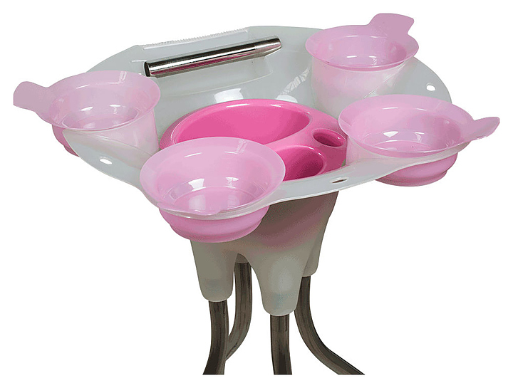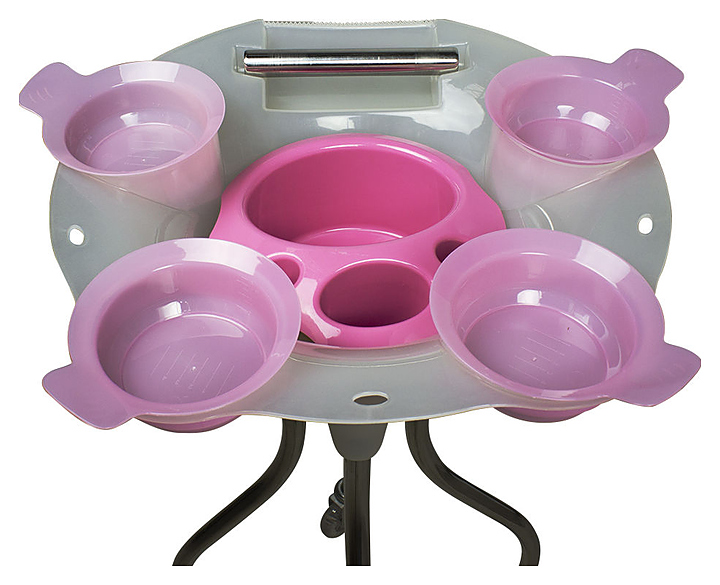 Тележка парикмахерская Мэдисон&Co Т-47 предназначена для использования в салонах красоты, парикмахерских для процедур по окрашиванию волос. Модель оснащена столиком-подставкой со съемными чашами, емкостью для рабочих принадлежностей, держателем для фольги, колесами на ножках. Каркас и держатель для фольги выполнены из хромированного металла, столик-подставка и чаши изготовлены из ударопрочного пластика, колеса выполнены из прорезиненного пластика в металлическом каркасе. Модель доступна для заказа в розовом и черном цвете. Особенности: