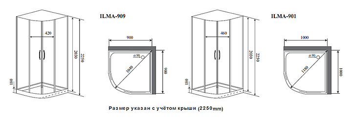 Кабина душевая TIMO Premium ILMA 909 Black 90х90х225 см