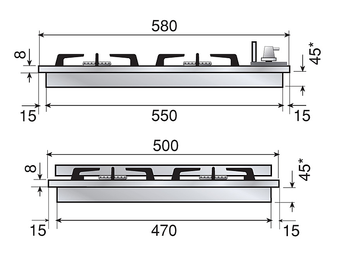 Газовая независимая варочная панель H360CV с 1-тройной конфоркой+3 конфорки.