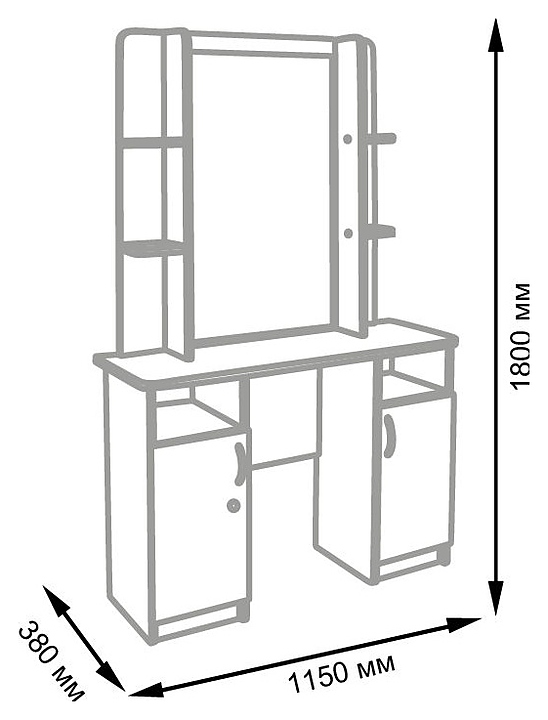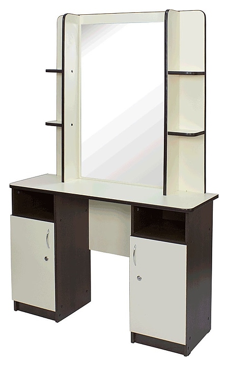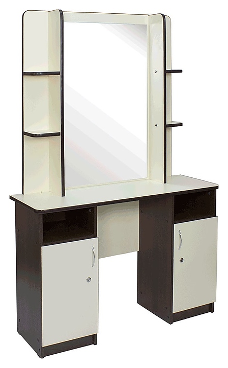 Парикмахерское зеркало МЭДИСОН ЭЛЕГАНС используется в парикмахерских, барбершопах и салонах красоты для организации рабочего пространства и комфортного взаимодействия между мастером и клиентом при проведении процедур мытья головы, окрашивания волос и других парикмахерских услуг. Модель оснащена односторонним прямоугольным зеркалом на широкой столешнице, двумя запираемыми на ключ тумбами, а также боковыми секциями с с полками для хранения оборудования и расходных материалов. Каркас, столешница, тумбы и полки выполнены из качественной ламинированной древесно-стружечной плиты с облицовкой влагостойкой меламиновой пленкой. Модель доступна в 14 альтернативных цветовых исполнениях каркаса. Особенности: