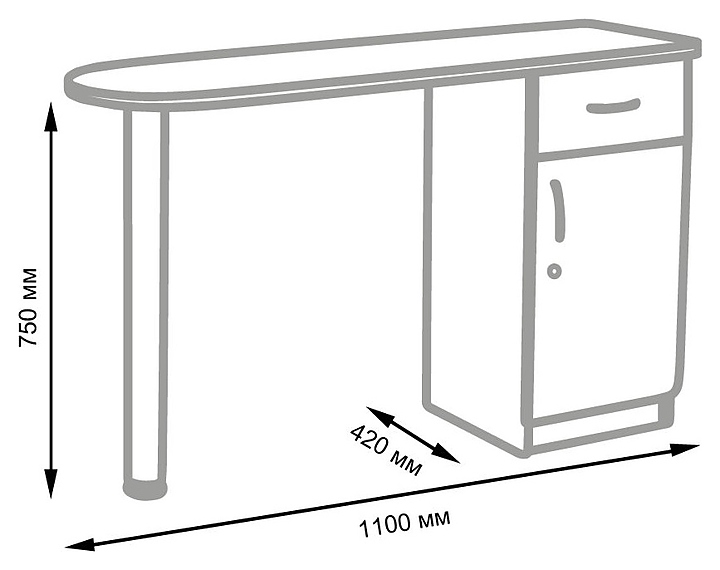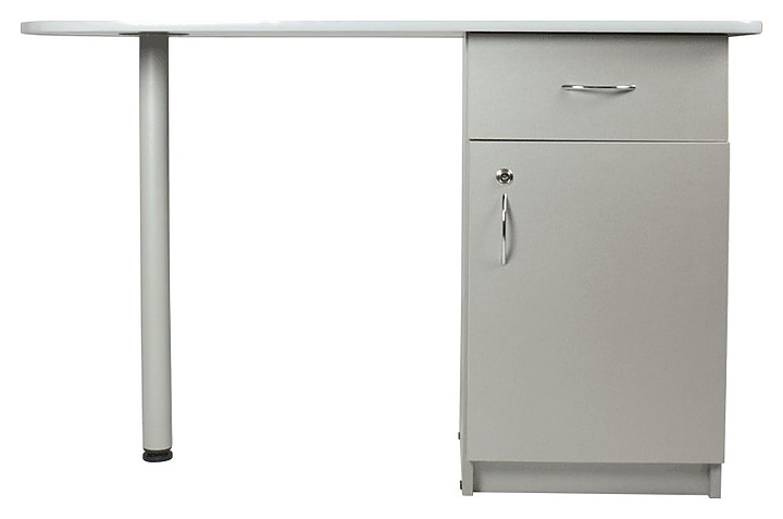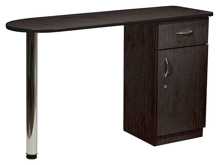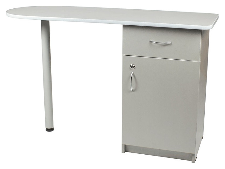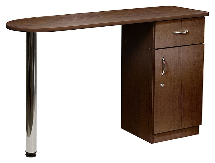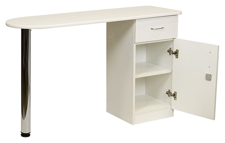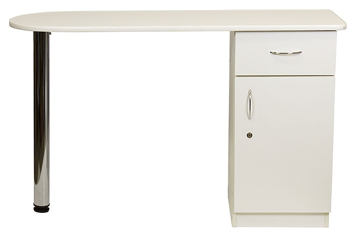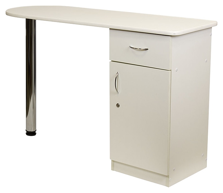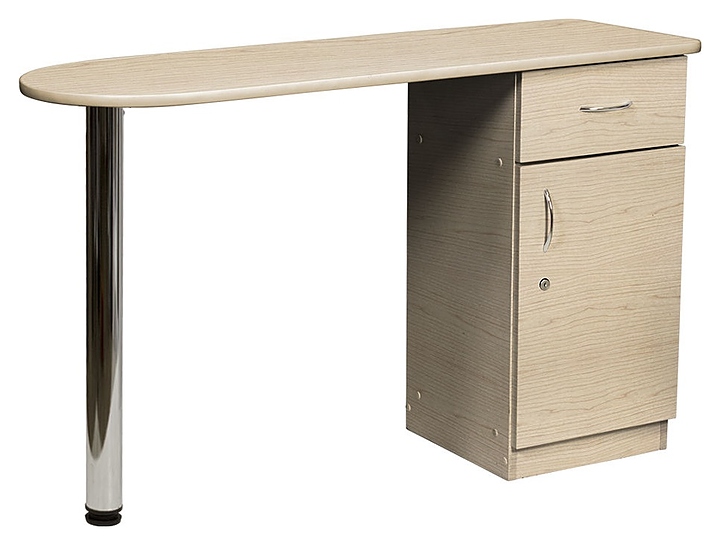 Маникюрный стол МЭДИСОН БРИДЖ предназначен для обустройства рабочего пространства мастера маникюра в косметологических центрах, салонах красоты и домашних студиях ногтевого сервиса. Модель оснащена столешницей, цилиндрической опорой на подпятнике и встроенной тумбой для хранения оборудования. Тумба укомплектована выдвижным ящиком и запираемым на ключ отделением с распашной дверцей и одной встраиваемой полкой. Столешница и тумба изготовлены из высококачественной ламинированной древесно-стружечной плиты с облицовкой влагостойкой меламиновой пленкой, опора и фурнитура – из хромированного металла, кант – из гибкого пластика в цвет столешницы. Модель доступна в 14 альтернативных цветовых исполнениях ЛДСП, а также в комбинациях различных цветов. Особенности: