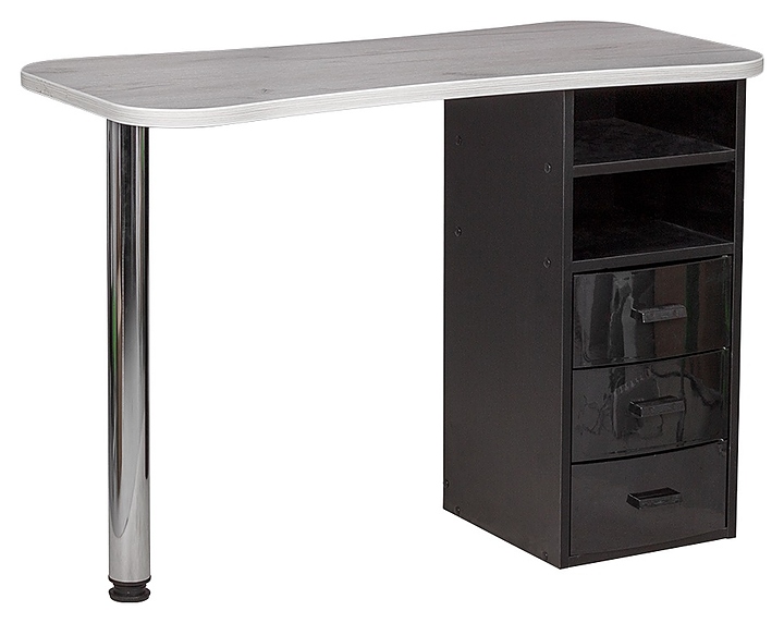 Маникюрный стол МЭДИСОН МАРИОН-3 с тремя ящиками предназначен для обустройства рабочего пространства мастера маникюра в косметологических центрах, салонах красоты и домашних студиях ногтевого сервиса. Модель оснащена столешницей, цилиндрической опорой на подпятнике и встроенной тумбой для хранения оборудования. Тумба укомплектована тремя выдвижными ящиками и открытым отделением с двумя полками. Столешница и тумба изготовлены из высококачественной ламинированной древесно-стружечной плиты с облицовкой влагостойкой меламиновой пленкой, опора – из хромированного металла, кант – из гибкого поливинилхлорида в цвет столешницы, ящики – из прочного пластика. Модель доступна в 14 альтернативных цветовых исполнениях ЛДСП, в 5 цветовых вариантах пластика ящиков, а также в комбинациях различных цветов. Особенности: