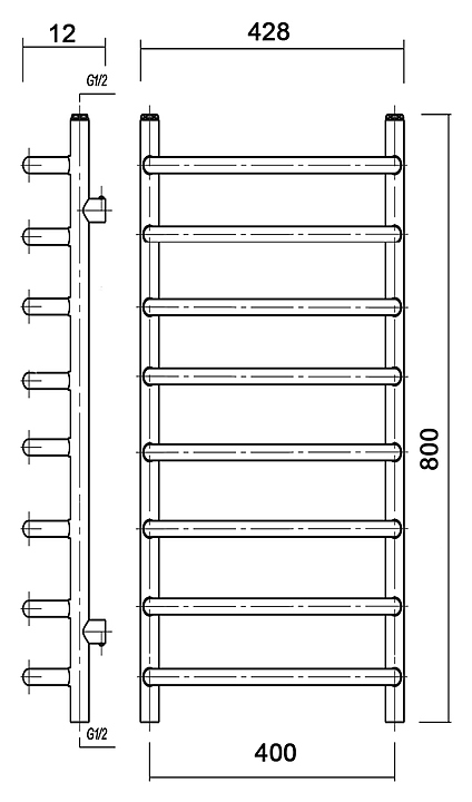 Водяной полотенцесушитель Domoterm Стефано П8 40x80 см АБР предназначен для подогрева и сушки полотенец, а также для обогрева ванных комнат в квартирах, коттеджах, частных домах. Модель оснащена восемью перекладинами для удобного использования. Изделие выполнено из латуни, отличающейся прочностью, долговечностью и устойчивостью к перепадам температур. Комплект поставки: