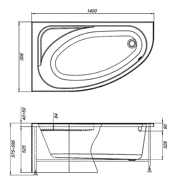 Ванна Aquanet Mia 140x80 L 140х80 см, акрил, левосторонняя