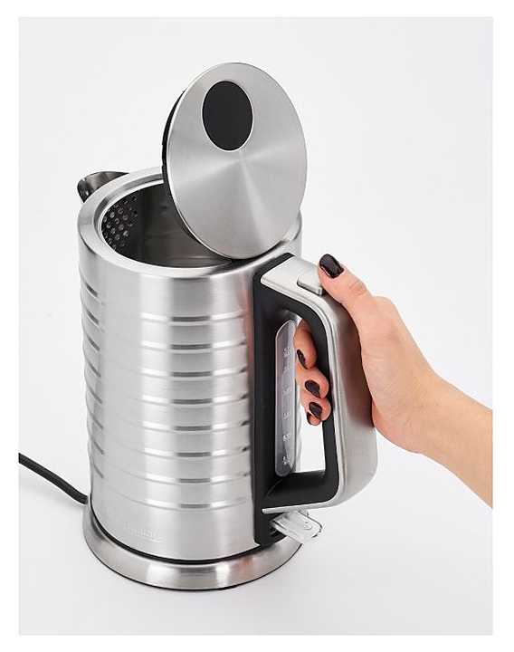 Чайник Profi Cook PC-WKS 1119 предназначен для подогрева воды, приготовления чая и кофе в частных домах и квартирах. Модель оснащена выключателем с голубой подсветкой и индикатором уровня воды. Корпус, крышка, нагревательный элемент и подставка выполнены из нержавеющей стали. Особенности: