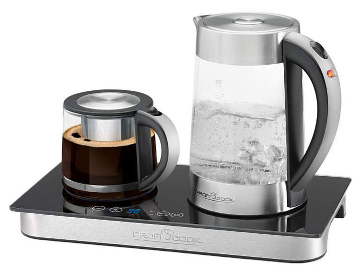 Чайная станция Profi Cook PC-TKS 1056 предназначена для подогрева воды, приготовления чая и кофе в частных домах и квартирах. Корпус чайников выполнен из нержавеющей стали и термостойкого безопасного стекла, нагревательный элемент и фильтр - из нержавеющей стали, поверхность подставки - из устойчивого к царапинам стекла с антипригарным покрытием. Комплектация: