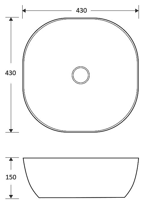 Раковина накладная Mira MR-4315 43х43 см, без отв. под смеситель, керамика