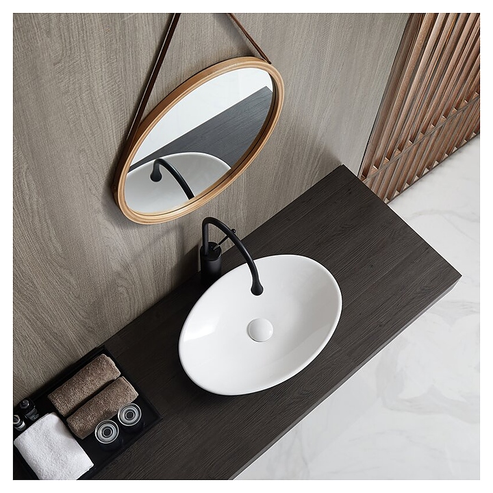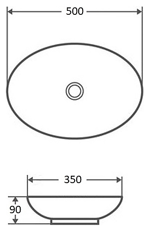 Раковина накладная Mira MR-5009 50х35 см, без отв. под смеситель, керамика