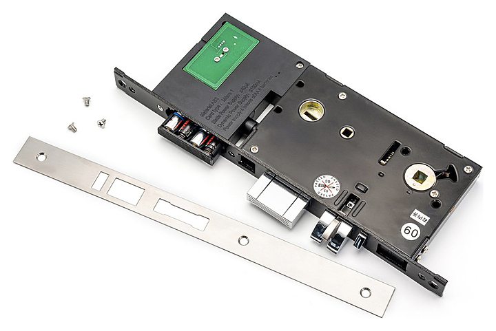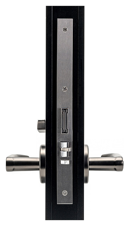 Электронный замок HSU9905-TH предназначен для установки в номерных фондах, в служебных помещениях в гостиницах, отелях и офисах. Изделие легко вписывается в интерьер любого отеля, вне зависимости от его дизайна. Модель оснащена высокочастотным считывателем карт, раздельными ручками, индикатором открытия двери, индикатором разряда батареи и светодиодами красного и голубого цвета. Ручка выполнена из нержавеющей стали AISI 304, электронная плата покрыта компаундным компонентом для использования в условиях повышенной влажности. В комплект поставки входят 2 механических ключа. Особенности: