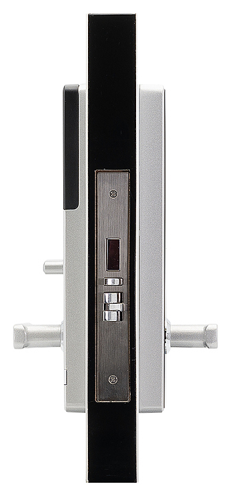 Электронный замок HSU-9916-S предназначен для установки в номерных фондах, в служебных помещениях в гостиницах, отелях и офисах. Изделие легко вписывается в интерьер любого отеля, вне зависимости от его дизайна. Модель оснащена высокочастотным считывателем карт, раздельными ручками, индикатором открытия двери, индикатором разряда батареи и светодиодами красного и зеленого цвета. Ручка выполнена из нержавеющей стали AISI 304, электронная плата покрыта компаундным компонентом для использования в условиях повышенной влажности. В комплект поставки входят 2 механических ключа. Особенности: