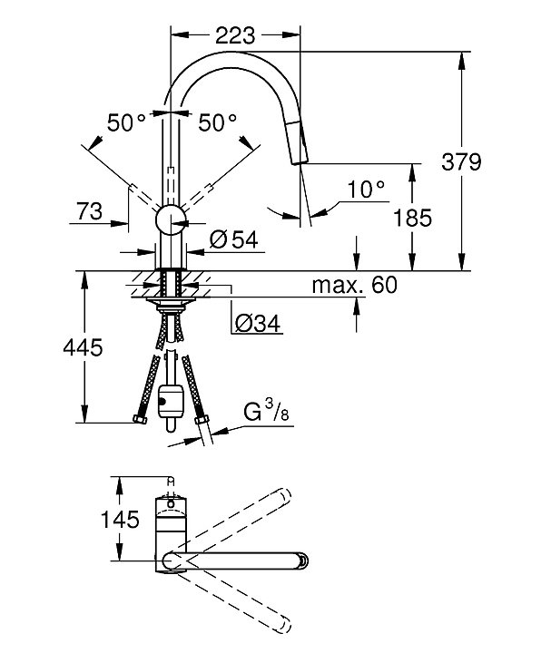 Смеситель для кухни с вытяжным изливом Grohe Minta 32321002
