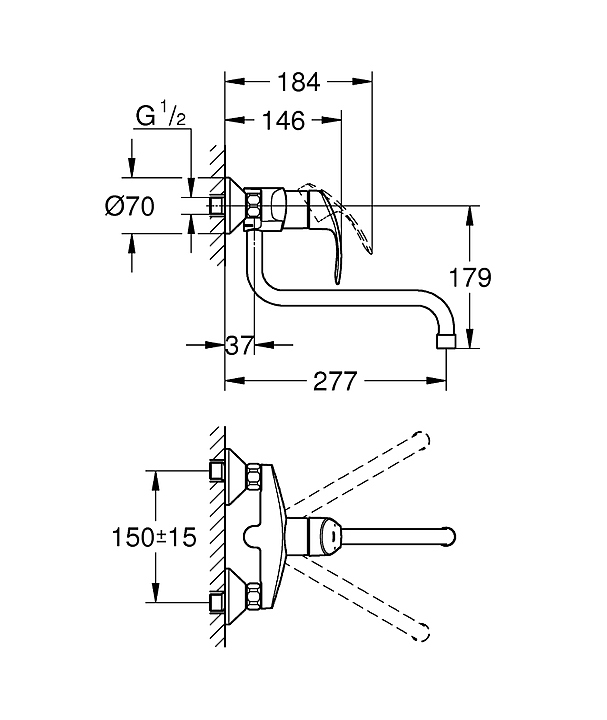 Смеситель для кухни настенный Grohe Eurosmart new 32224002