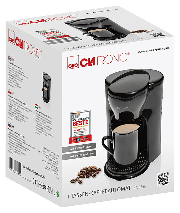 Капельная кофеварка Clatronic KA 3356 применяется в частных домах и квартирах, в отелях и офисах для приготовления кофе и напитков на его основе. Модель оснащена съемным нейлоновым фильтром и выключателем со световым индикатором. В комплект поставки входит керамическая кружка. Особенности: