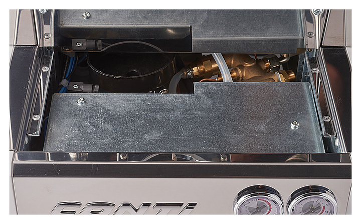 Кофемашина CONTI CC100 Compact TC 2Gr используется в домашних условиях, на предприятиях общественного питания и торговли для приготовления кофе эспрессо, капучино или латте. Модель оснащена 2 паровыми кранами для вспенивания молока. Бойлер изготовлен из меди. Особенности: