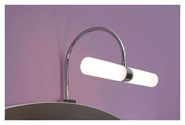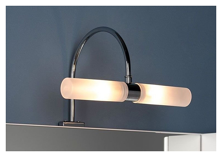 Светильник Aquanet 270 MT-G9002 предназначен для установки над зеркалами. Модель оборудована трансформатором и выходами для подключения к электросети.