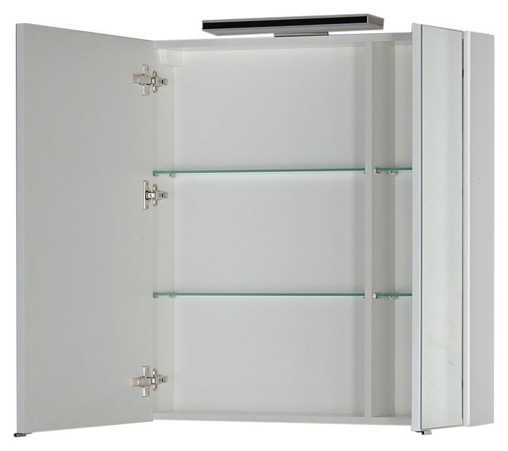Зеркальный шкаф Aquanet Орлеан 80 дополнит интерьер ванной комнаты. За счет подвесной конструкции изделие позволяет экономить пространство в ванной комнате и облегчает уборку. Модель оснащена 2 распашными дверцами и 2 стеклянными полками в каждом отделении. Корпус изделия выполнен из влагостойкой ЛДСП, а фасад из МДФ и покрыт глянцевой краской. Светильник в комплект поставки не входит и приобретается отдельно. Особенности: