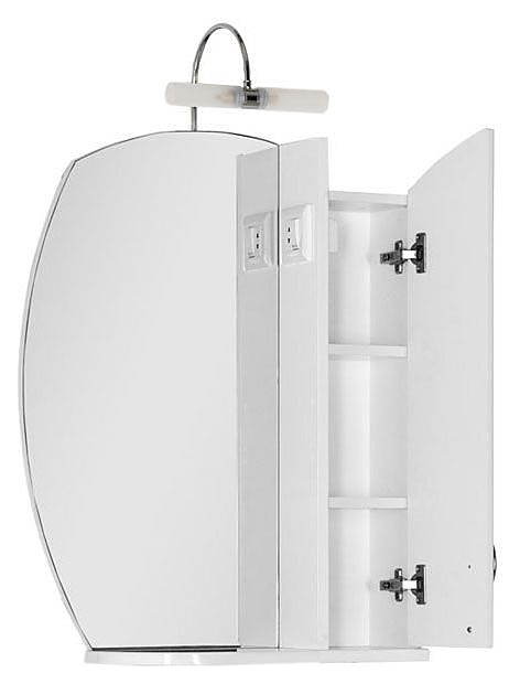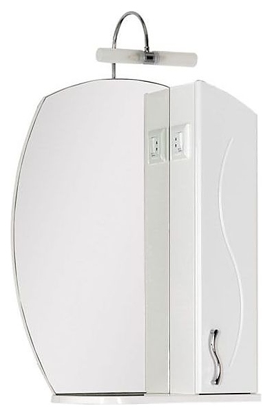 Зеркало Aquanet Моника 60 от российского бренда дополнит интерьер ванной комнаты. Благодаря подвесной конструкции модель не занимает много места, что позволяет экономить пространство, а также облегчает уборку. Зеркало оснащено шкафчиком с распашной дверцей и полкой. Корпус изделия выполнен из влагостойкой ЛДСП, а корпус из МДФ с покрытием глянцевой краской. Светильник в комплект поставки не входит и приобретается отдельно. Особенности: