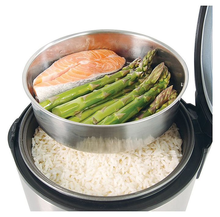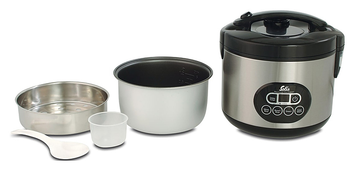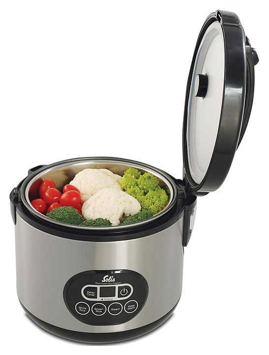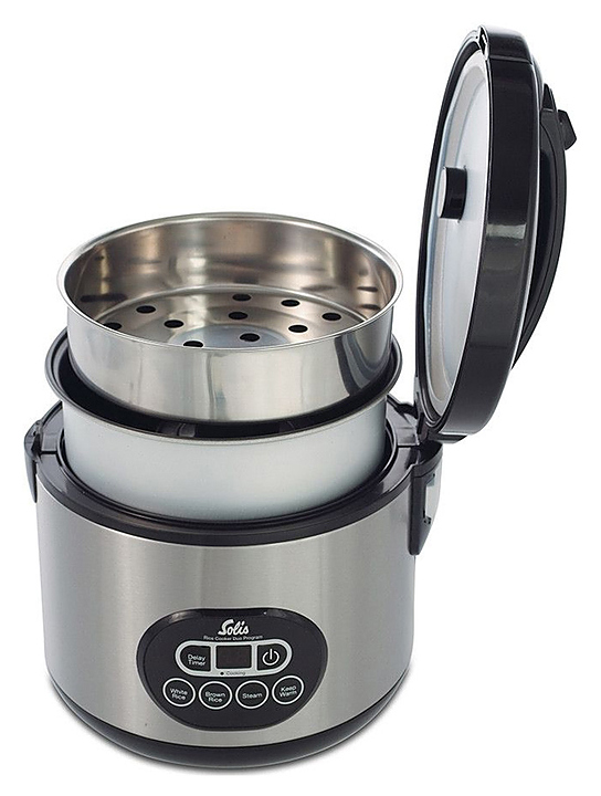Рисоварка Solis Rice Cooker Duo Program предназначена для приготовления различных видов риса, а также рыбы и овощей на пару в частных домах, квартирах, отелях и офисах. Модель оснащена панелью управления со световыми индикаторами, цифровым дисплеем и вставкой для приготовления на пару. Корпус выполнен из нержавеющей стали, крышка - из пластика, чаша - с антипригарным покрытием. В комплект поставки входят мерная чашка и ложка. Особенности: