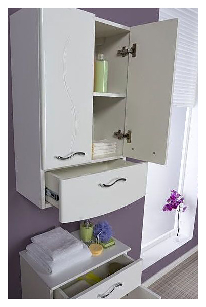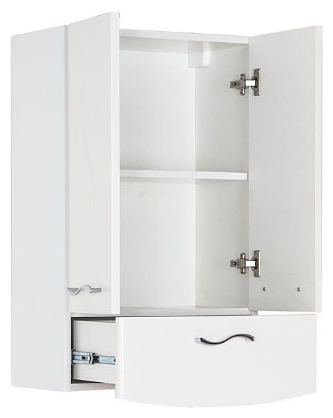 Шкафчик Aquanet Моника 50 дополнит интерьер ванной комнаты. Благодаря подвесной конструкции модель не занимает много места, что позволяет экономить пространство в небольшой ванной комнате, а также облегчает уборку. Модель оснащена 2 распашными дверцами и 1 выдвижным ящиком, где удобно разместить все необходимые в ванной комнате принадлежности. Изделие выполнено из влагостойкой ЛДСП, а фасады из МДФ окрашены глянцевой краской. Особенности:
