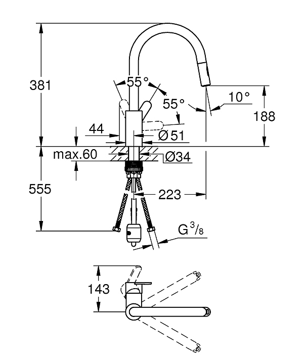 Смеситель для кухни с вытяжным изливом Grohe Eurostyle Cosmopolitan 31482003