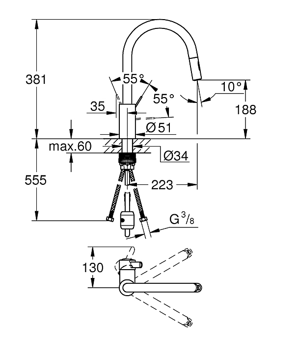 Смеситель для кухни с вытяжным изливом Grohe Eurosmart Cosmopolitan 31481001