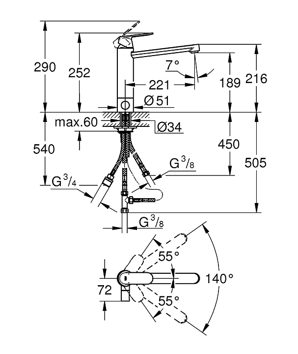 Смеситель для кухни с запорным клапаном Grohe Eurosmart Cosmopolitan 30195000