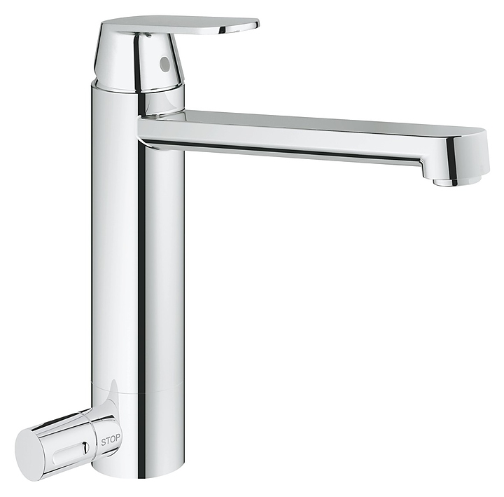 Смеситель для кухни Grohe Eurosmart Cosmopolitan 30195000 предназначен для установки над кухонной мойкой. Продукт оснащен более длинным изливом для того, чтобы быть направленным ближе к центру мойки для удобства использования и запорным клапаном, благодаря которому, чтобы отключить подачу воды к посудомоечной машине, достаточно закрыть клапан, расположенный у основания корпуса смесителя. Модель является частью коллекции Eurosmart Cosmopolitan, что позволяет выдержать дизайн кухни и ванной комнаты в едином стиле. Однорычажный тип управления позволяет очень быстро и плавно регулировать подачу воды одной рукой. Изделие выполнено из высококачественной латуни, отличающейся прочностью, долговечностью и устойчивостью к перепадам температур. Особенности: