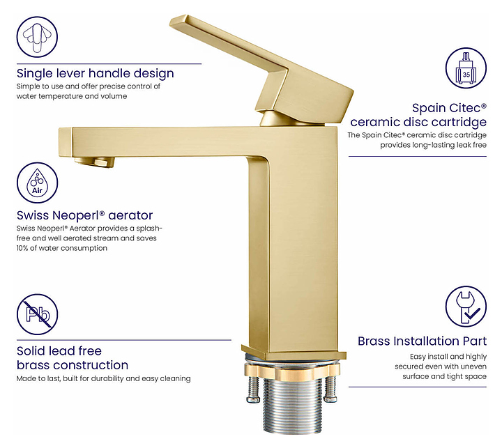 Смеситель для раковины TIMO Selene 2061/17F золото матовое