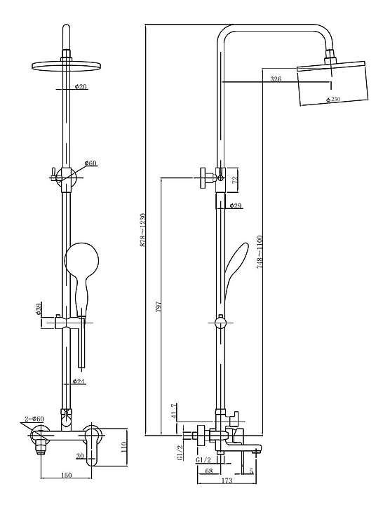 Стойка душевая Aquanet Passion R3 AF300-72-R-B черная