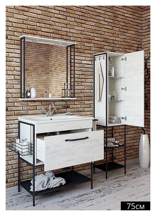 Гарнитур Sanflor Бруклин выполнен в классическом стиле. Благодаря изящной отделке и классическим формам мебель станет украшением любой ванной комнаты. В комплект входит тумба под раковину, раковина Santek Элина 75, правосторонний пенал и зеркало. Тумба оснащена 1 ящиком, зеркало - полочкой и светильниками. Пенал оснащен 1 дверцей и двумя открытыми полками. Раковина имеет слив-перелив и одно отверстие для смесителя, расположенное по центру. Корпус мебели выполнен из влагостойкой ЛДСП. Особенности: