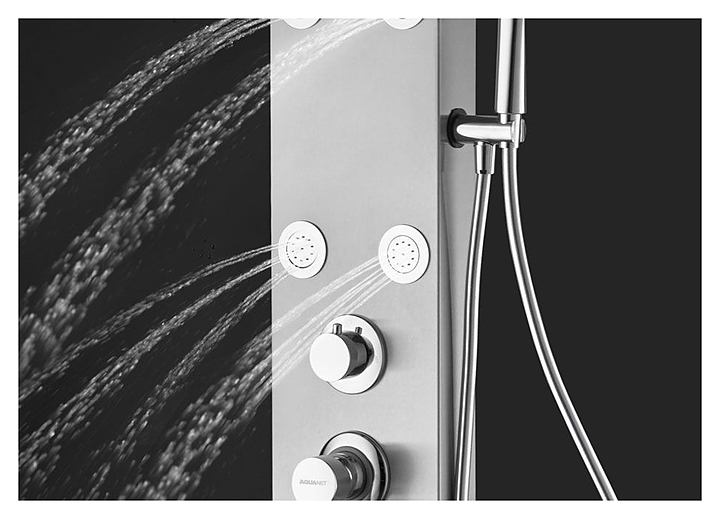 Душевая стойка Aquanet Galaxy Matt используется в ванных комнатах. Модель оснащена круглой лейкой и тонким верхним душем. Изделие выполнено из матовой нержавеющей стали. Комплектация: