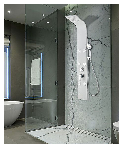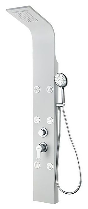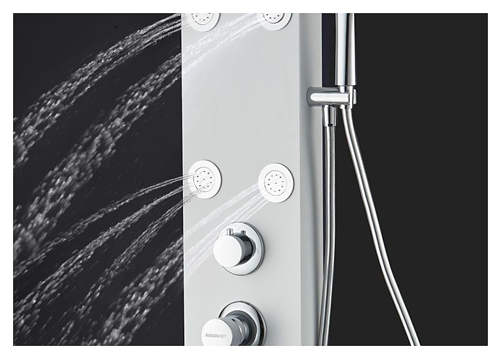 Душевая стойка Aquanet Galaxy White используется в ванных комнатах. Модель оснащена круглой лейкой и тонким верхним душем. Изделие выполнено из алюминия. Комплектация: