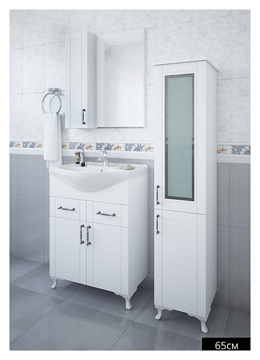 Гарнитур Sanflor Глория 65 см, 3 предмета, с правост. зеркалом, белый