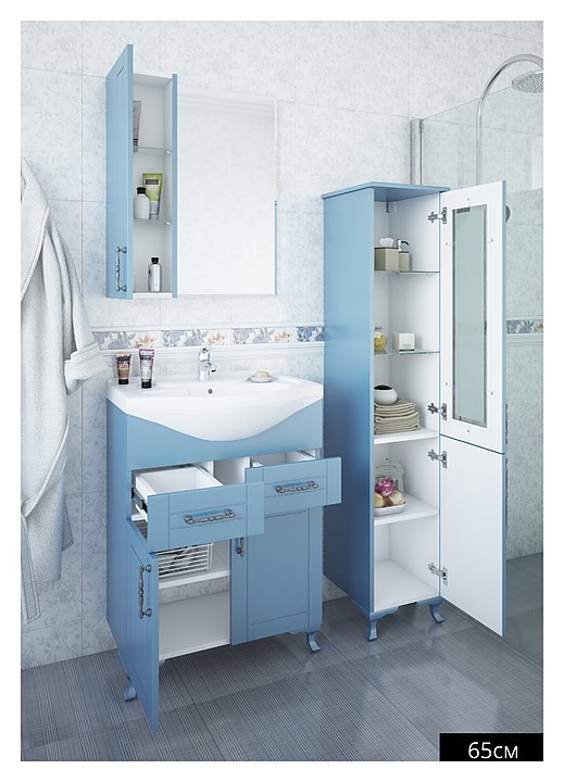Гарнитур Sanflor Глория 65 см, 3 предмета, с левост. зеркалом, голубой