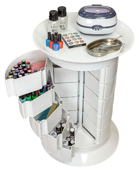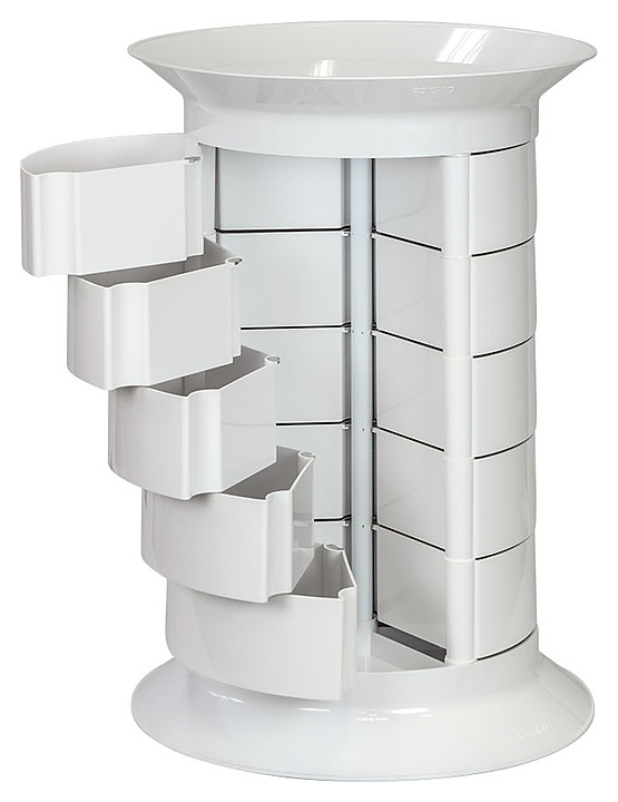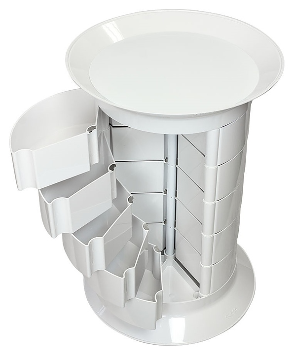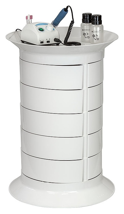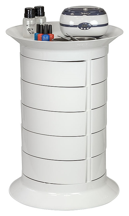 Косметологическая тележка-тумба GiroCo Espera предназначена для хранения рабочих инструментов, приборов и расходных материалов в парикмахерских, барбершопах, маникюрных студиях, салонах красоты и косметологических центрах. Модель оснащена широкой круглой крышкой-полкой, пятнадцалью вместительными выдвижными ящиками и шестью поворотными колесами. Каркас тележки выполнен из стали, ящики, полка и колеса изготовлены из ударопрочного пластика. Модель также доступна в сером цветовом исполнении и с крышкой-полкой без углубления. Особенности: