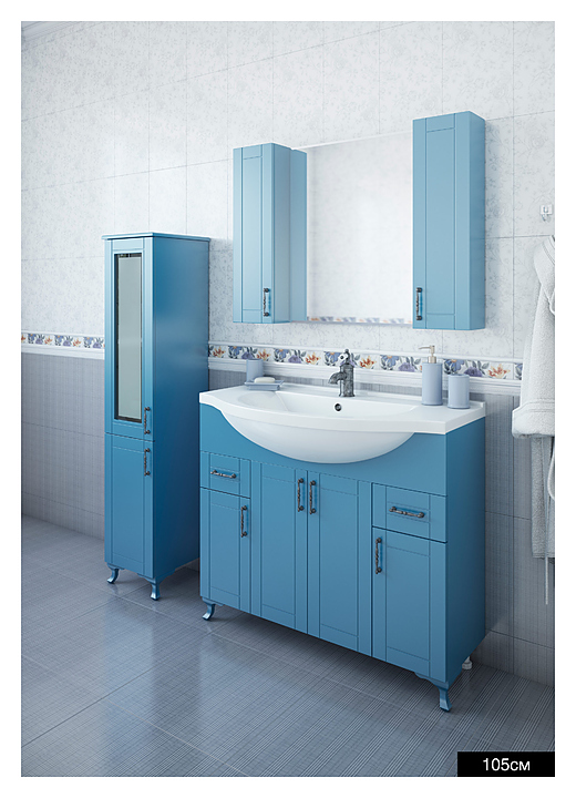 Гарнитур Sanflor Глория выполнен в классическом стиле. Благодаря изящной отделке и классическим формам мебель станет украшением любой ванной комнаты. В комплект входит тумба под раковину, раковина Santek Эльбрус 100 и зеркало. Тумба оснащена 4 дверцами и 2 ящиками с механизмом плавного закрытия, зеркало - двумя шкафчиками. Раковина имеет слив-перелив и одно отверстие для смесителя, расположенное по центру. Корпус мебели выполнен из влагостойкой ЛДСП с эмалевым покрытием. Смеситель в комплект поставки не входит и приобретается отдельно. Особенности: