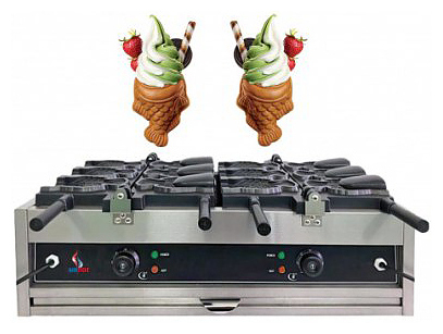 Вафельница Airhot рыбки WBFT-6 тайяки используется на предприятиях общественного питания и торговли для выпекания полых японских вафель тайяки в форме рыбок. Каждая вафля может быть наполнена начинкой. Модель оснащена терморегулятором и таймером. Корпус выполнен из нержавеющей стали, жарочная поверхность - из чугуна с антипригарным покрытием. Дополнительные характеристики: