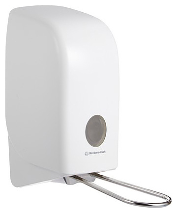 Диспенсер Kimerly-Clark Aquarius 6955 предназначен для подачи жидкого мыла в общественных санитарных узлах офисов, предприятий общепита, медицинских учреждений и других мест небольшой проходимости. Модель оснащена локтевым упором, скрытым замком и окошком для контроля над наличием расходного материала. Корпус выполнен из ударопрочного ABS пластика белого цвета. Особенности: