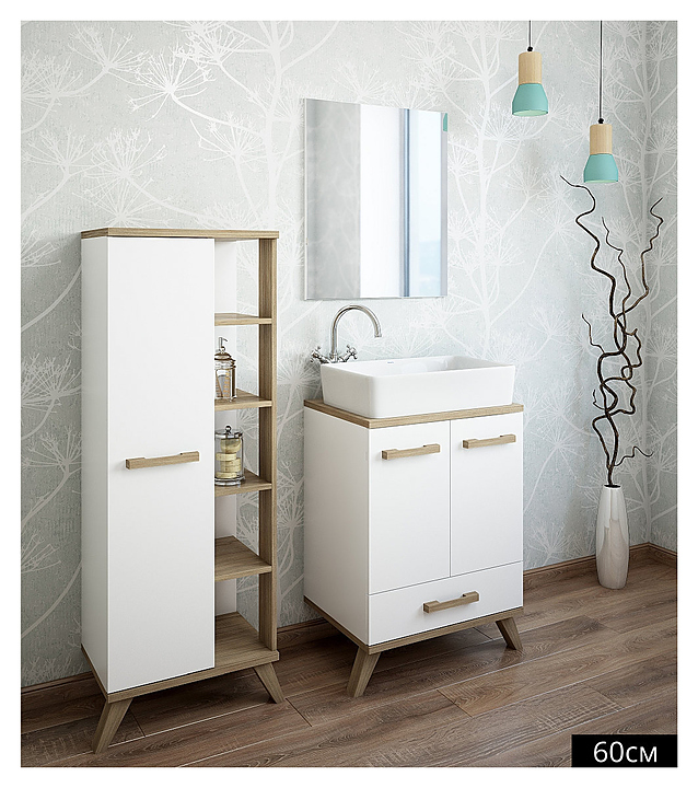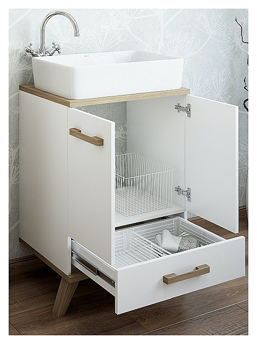 Тумба с раковиной Sanflor Ингрид 60 см белая матовая, вяз швейцарский