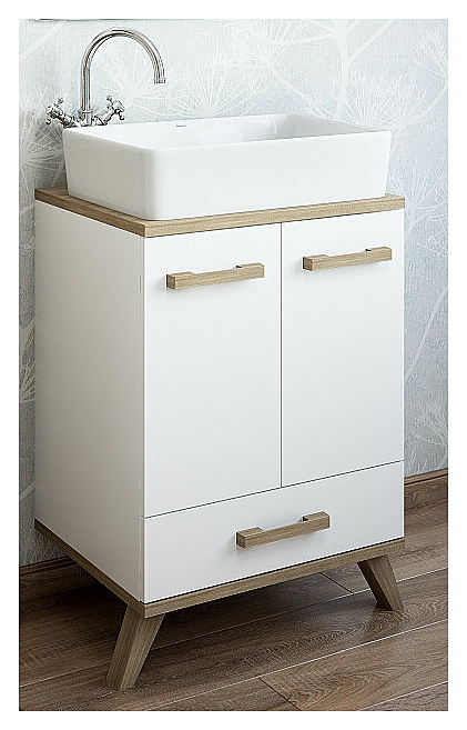 Гарнитур Sanflor Ингрид 60 см, 5 предметов, с подвесн. шкафом 50 см, с тумбой 50 см, бел. матовый, вяз швейцарский